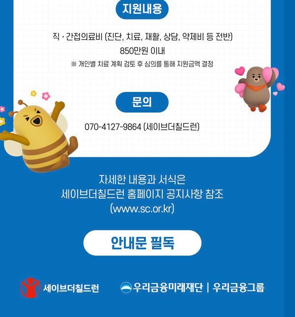 의료비 지원신청은 12월 13일까지며, 자세한 내용은 세이브더칠드런 홈페이지에서 확인할 수 있다.