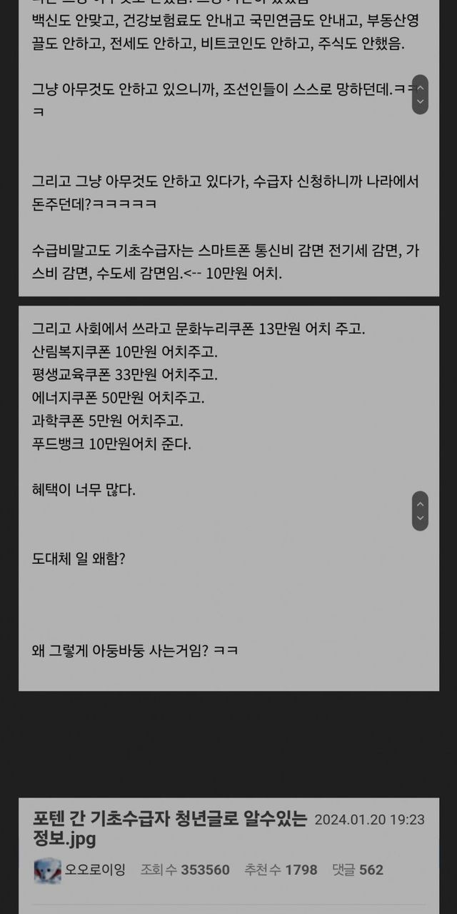저번에 올라왔던.. 나라에서 돈 주는데 일 왜하냐는 기초수급자 분석글