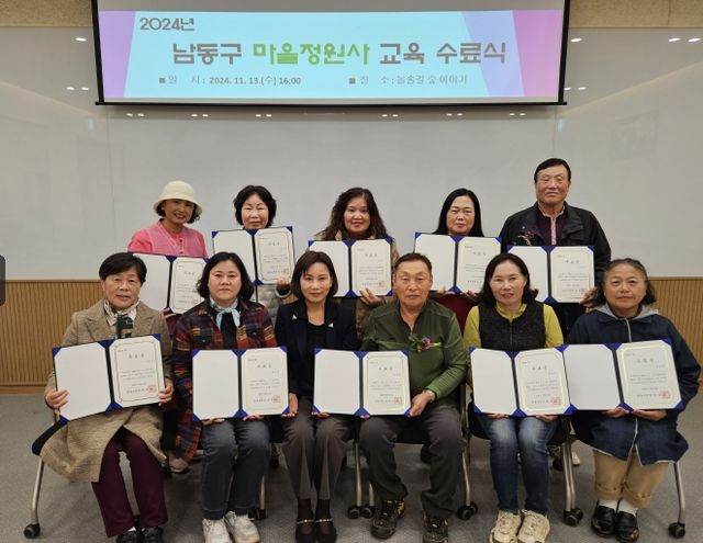 박종효 구청장은 “마을정원사 교육은 소규모 정원 조성 사업의 효과를 높이고, 녹색 복지를 펼치기 위한 방안을 모색하면서 실시하게 된 교육이다”라며 “남동구의 정원문화 확산을 위해 마을정원사의 활발한 활동과 적극적인 역할을 기대한다”라고 말했다.