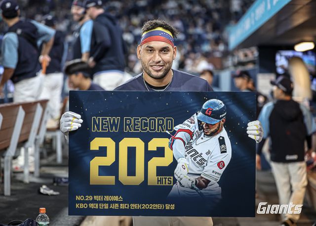 레이예스는 2024시즌 144게임 전 경기 출전, 타율 0.352(574타수 202안타)·111타점·15홈런을 기록했으며, 간결한 스윙과 컨택 능력을 바탕으로 KBO리그 단일시즌 최다 안타 신기록을 달성했다.