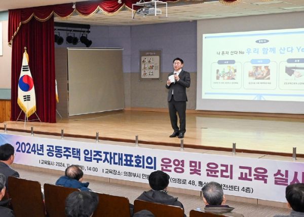 [저스트 이코노믹스 김시래 기자] 의정부시는 11월 25일 민방위교육장에서 관내 의무관리대상 입주자 대표회의 구성원 등 150여 명을 대상으로 ‘2024년 입주자 대표회의 운영 및 윤리 교육’을 실시했다.