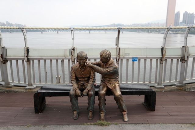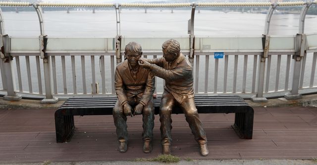 마포대교 위에는 '여보게 친구야, 한 번만 더 생각해 보게나”라고 적힌 ‘한 번만 더’ 동상이 설치돼 있습니다. 동상의 모습처럼 어깨를 토닥이며 건네는 작은 위로가 누군가에게는 큰 힘이 될 거라 생각합니다. / 뉴스1