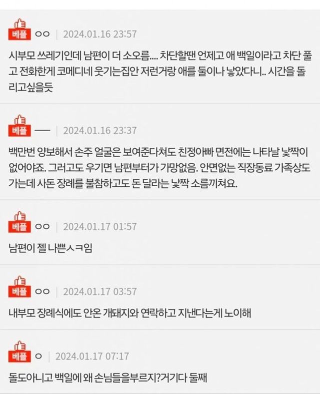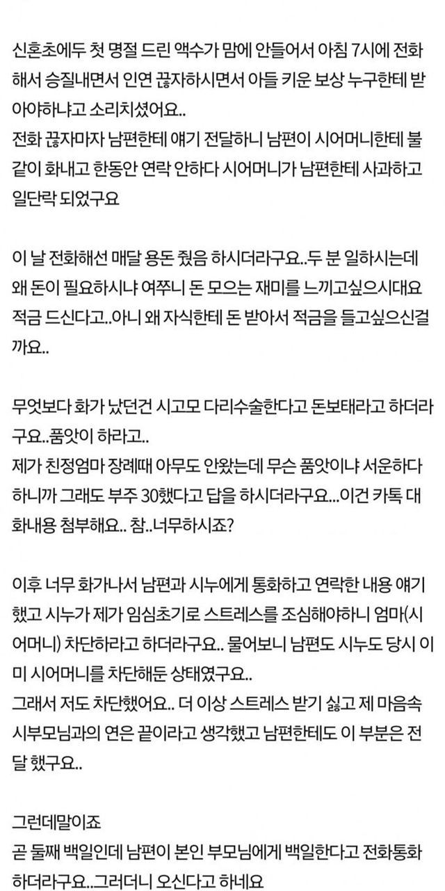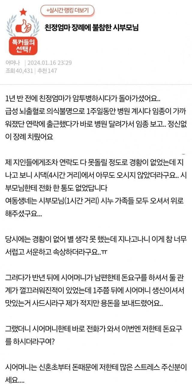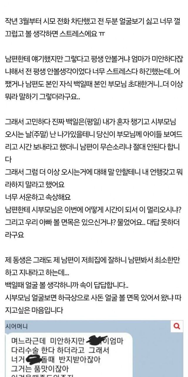 친정엄마 장례에 불참한 시부모님.