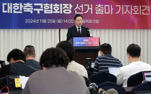 허정무 전 감독은 출마 선언문을 낭독하며 "현대가에 도전한다는 이야기를 많이 들었다. '감히'라는 이야기도 있다"고 말했다. 그러나 그는 "그런 면에서 두려움은 없다. 어떤 소리도 두려워하지 않고 해야 할 일에 최선을 다할 각오"라며 자신감을 보였다. 외부 압박 속에서도 흔들리지 않고 결정을 내린 것을 강조하는 대목이었다.