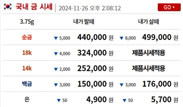 순금(24K) : 매입가 49만 9000원 / 매도가 44만 원