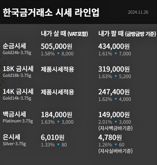 순금(24K) : 매입가 50만 5000원 / 매도가 43만 4000원