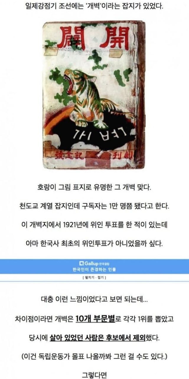 1921년 조선인들이 뽑은 한국사 최고의 위인.