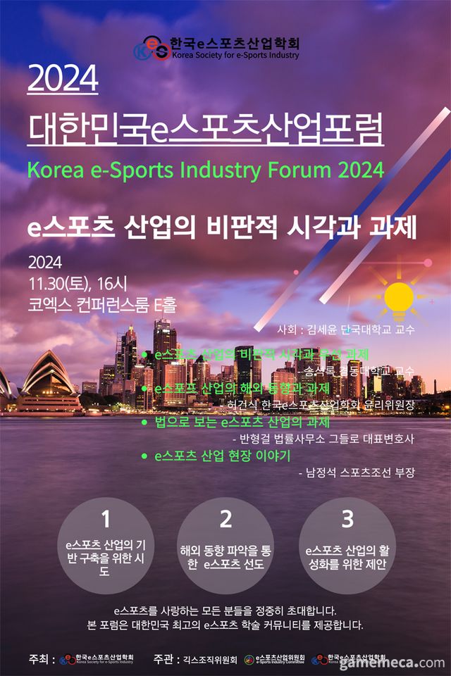 한국e스포츠산업학회는 오는 30일 오후 4시부터 코엑스에서 2024 대한민국e스포츠산업포럼을 개최한다.