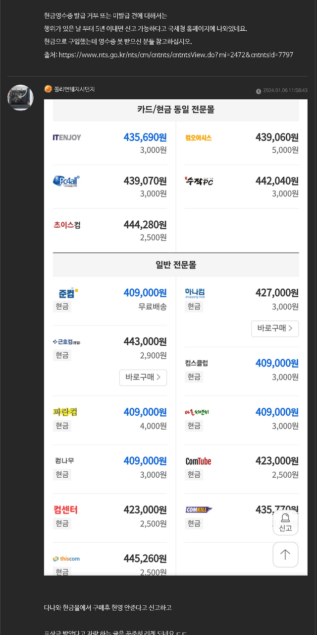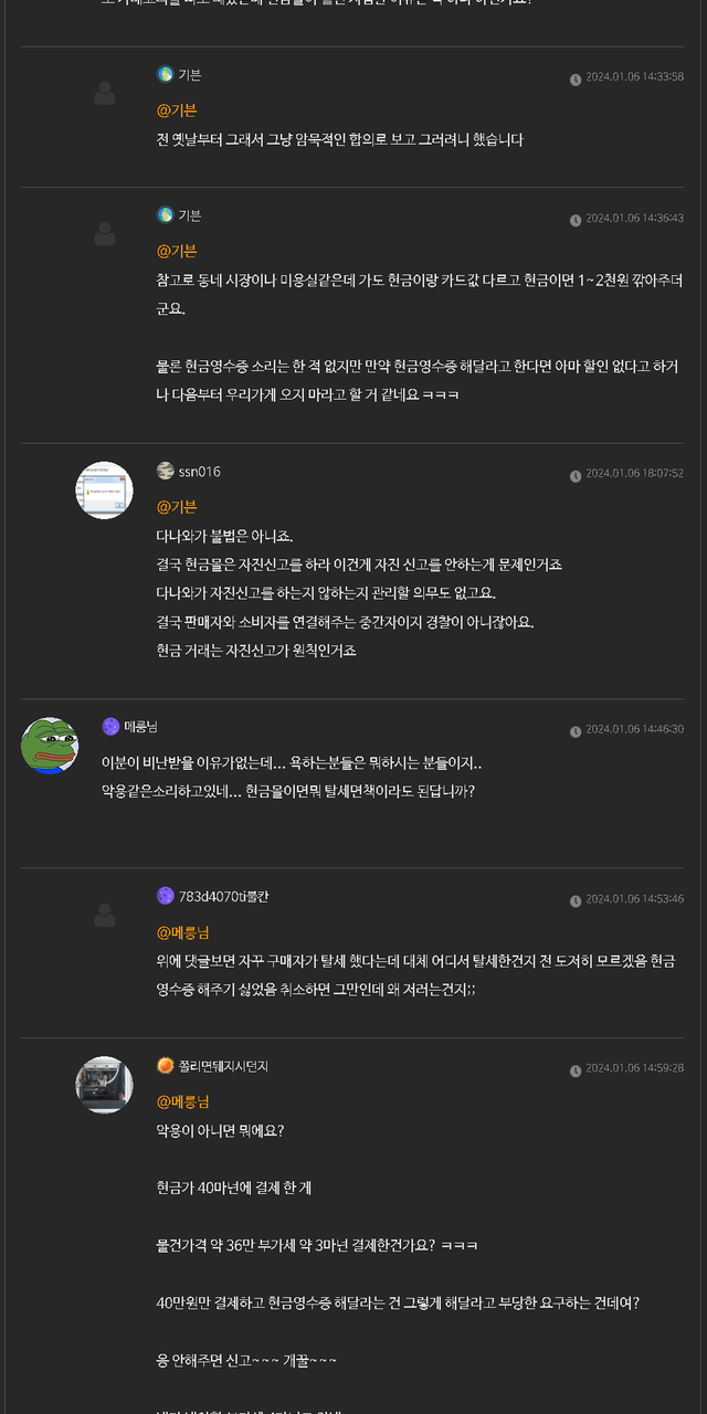 용팔이 현금영수증 미발급으로 신고먹으면 피해 많이 보나보네요
