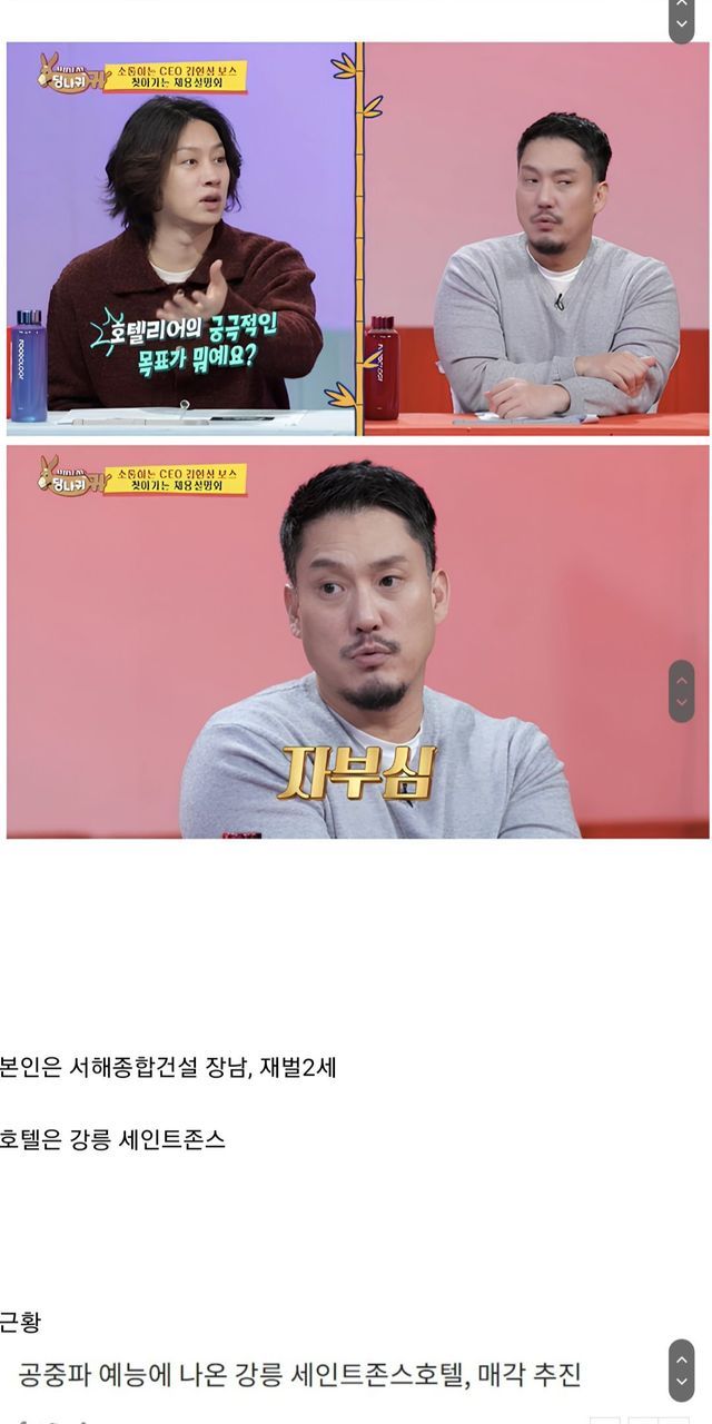 호텔도 자수성가해서 만들어놓고 자부심타령도 한것도 아니였고..