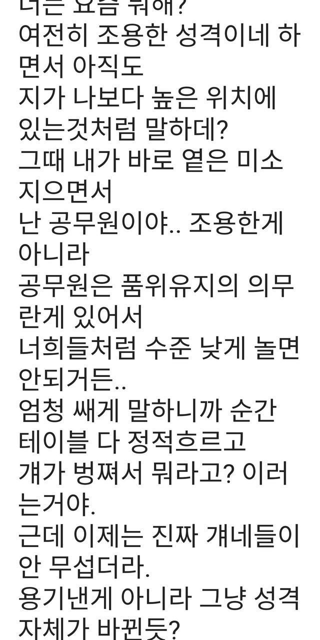 공무원 되니까 일진들도 사람 못건들이네 ㅋㅋ.