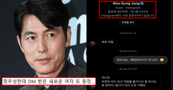 "번호 알려줘도 돼요?"...정우성, 또 다른 일반인 여성에게 보낸 DM 내용 유출 '플러팅 장인이었다'