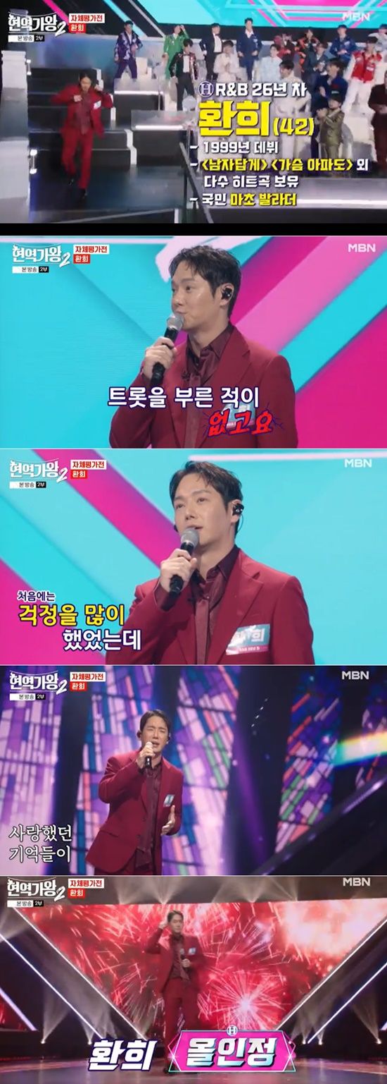 26일 첫 방송된 MBN '현역가왕2'에서는 자체평가전이 진행된 가운데, 환희가 트로트 가수로서 도전을 알렸다.