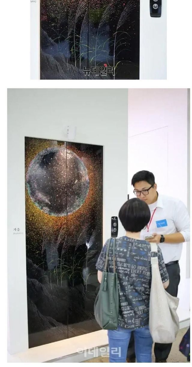 한국 장인이 만든 나전칠기 엘리베이터.