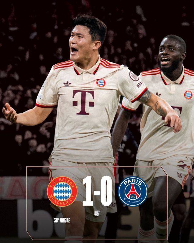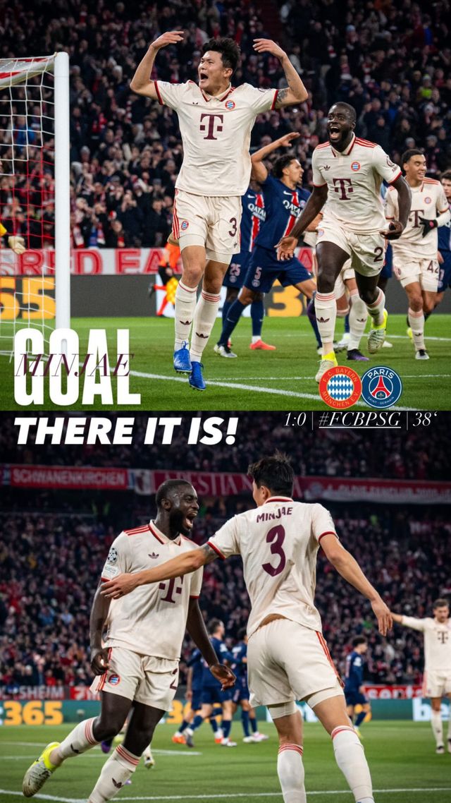 뮌헨의 선제 결승 골은 다름 아닌 김민재의 머리에서 나왔다. 김민재는 이날 전반 막바지 코너킥 상황에서 세컨드 볼을 정확한 헤더로 PSG의 골망을 흔들었다. 김민재가 UCL에서 득점을 터뜨린 건 이번이 처음이다. 뮌헨 입성 후 공식전 3호 골이기도 하다.