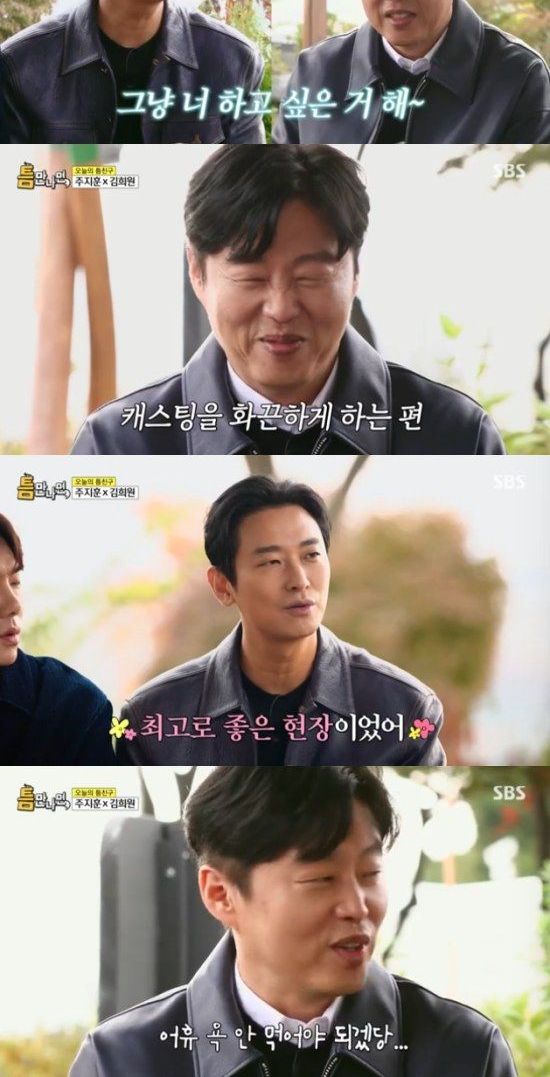 지난 26일 방송된 SBS 예능 프로그램 '틈만나면'에서는 배우 주지훈, 김희원이 '틈 친구'로 출연해 유재석, 유연석과 함께 '틈 주인'을 만나 이야기를 나눴다.