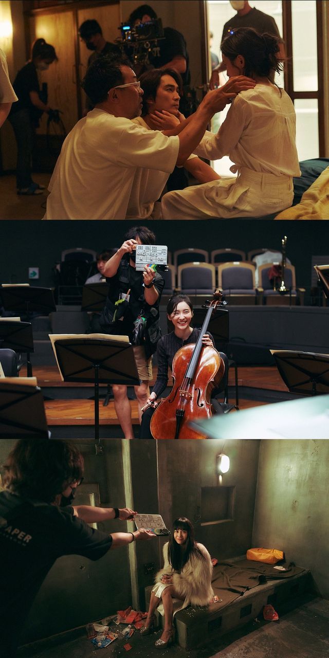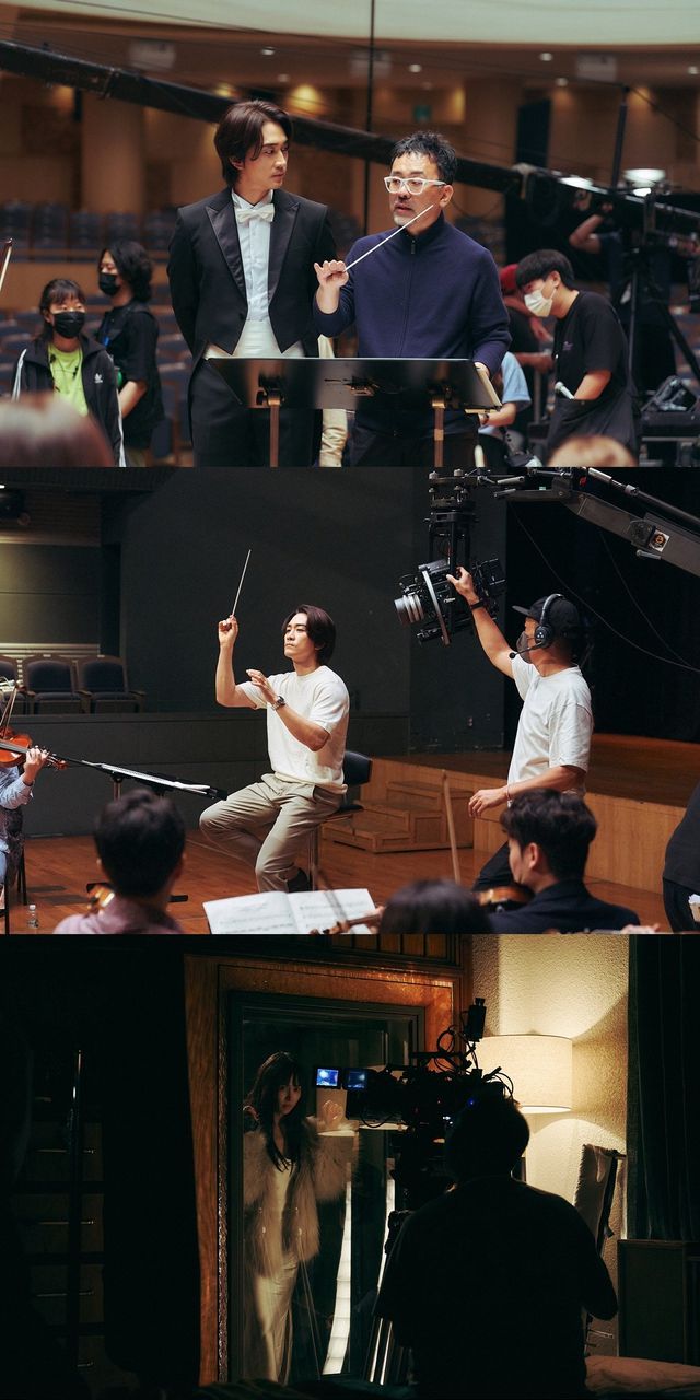 이번에 공개된 온앤오프 스틸은 ‘히든페이스’의 화기애애한 촬영 현장부터 긴장감 넘치는 작품 속 분위기까지 카메라의 온앤오프에 따른 배우들의 반전 매력을 고스란히 담고 있어 시선을 끈다. 먼저, 촬영에 앞서 김대우 감독과 진지하게 논의하며 연기에 집중한 모습의 송승헌은 ‘히든페이스’를 통해 첫 오케스트라 지휘자 연기에 도전한 그가 선보일 새로운 모습에 대한 궁금증을 자극한다.