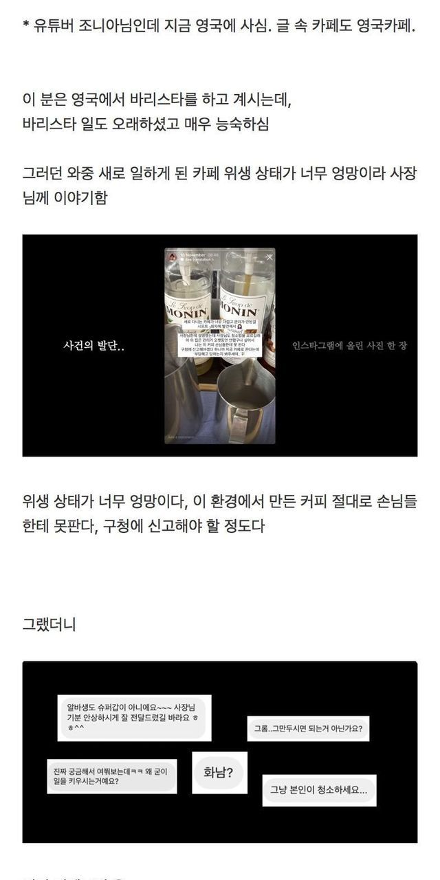 새로 일하게 된 카페가 너무 더러워서 사장님에게 말한 바리스타.jpg