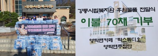 (엑스포츠뉴스 이정범 기자) 영탁의 팬모임 '영탁 앤 주접단'이 강릉시립복지원에 이불 70채를 기부했다.