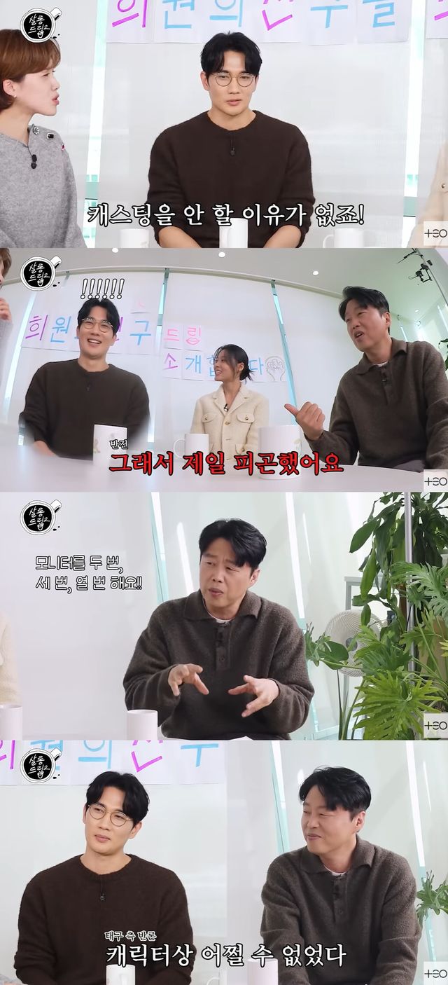 그 말에 어깨를 돌리며 스트레칭 하는 엄태구. "왜, 화났냐"며 엄태구를 보다가도 김희원은 "모니터를 두 번, 세 번, 열 번을 한다. 계속 찾아보고 바꾸고 한다"며 폭로를 이어갔다.