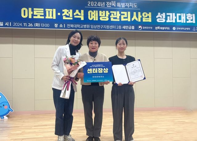 [파이낸셜경제=김영란 기자] 진안군보건소가 2024년 아토피·천식 예방관리사업 성과대회 및 2024년 만성질환 연구포럼에서 우수기관으로 선정돼 보건복지부 장관 표창과 전북특별자치도 아토피·천식 교육정보센터장상을 수상했다.