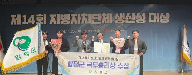 함평군은 ‘지방자치단체 생산성대상’에서 지난해 ‘기량향상 우수’ 지자체로 선정되어 행정안전부장관상을 수상한 바 있으며, 올해는 지표 전 분야에서 고르게 우수한 성적을 거두어 ‘최우수’ 지자체로 선정되고, 국무총리상을 수상하는 쾌거를 이뤘다.