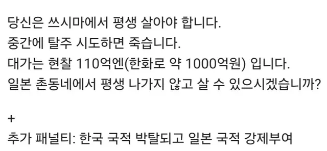 일본 대마도에서만 평생 살면 110억엔