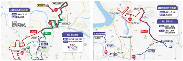 G1, G2, G3노선은 노선당 각 1대씩 운정을 기점으로 금촌을 거쳐 문산제일고를 연결하고 M1노선 2대는 당동리에서 세경고까지 운행한다.