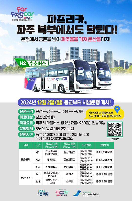 최은미 교육장은 “금촌과 문산 파주 북부로 확대되는 파프리카는 학생들의 통학 문제를 개선하고 진정한 교육복지를 실현하는 큰 걸음이 될 것으로 기대한다”고 전했다.