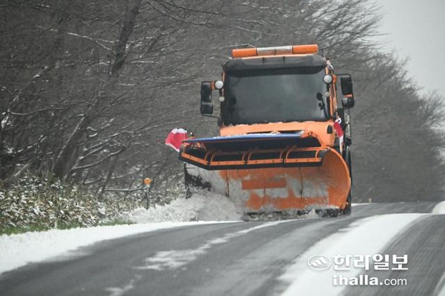 [한라일보] 제주 한라산을 포함한 전국에 올가을 첫눈이 내리면서 비행기 결항과 함께 도내 일부 도로에서 차량 운행이 통제됐다.