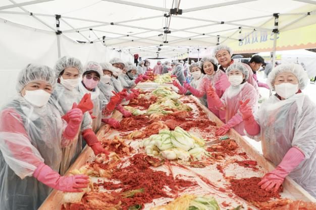 이날 행사에는 기업, 단체, 시민 등 600여 명의 자원봉사자가 참여해 지역 내 소외된 이웃을 위한 김장김치 담그기 작업을 진행했다.