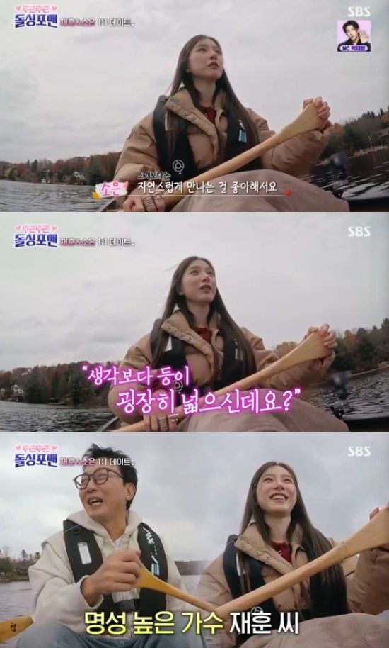 이후 두 사람은 호숫가에서 카약을 탔다. 탁재훈의 뒤에서 등을 보며 노를 젓던 김소은은 "생각보다 등이 넓으시다. 듬직해보인다"고 칭찬했다.