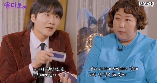타로 카드를 확인한 그는 "궁합이 진짜 좋다. 좋든 안 좋든 서로 무언가를 같이 했다는 것에 만족하게 된다. 일을 같이 하면 잘되는 편이다"라며, 둘이 함께 일할 때 조심해야 할 것까지 예측했다.