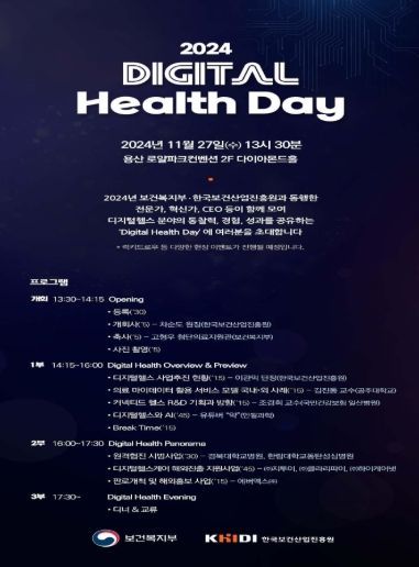 [와이뉴스] 보건복지부와 한국보건산업진흥원(원장 차순도)은 11월 27일 오후 1시 30분 서울 로얄파크컨벤션에서 ‘2024 Digital Health Day’를 개최했다.