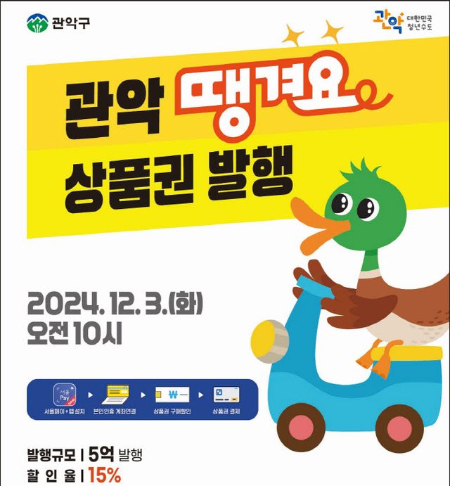 박준희 관악구청장은 “관악땡겨요상품권 할인 발행이 소상공인의 매출 증가와 구민들의 가계 부담 해소에 많은 도움이 되길 바란다”며 “앞으로도 지역 상권에 활력을 불어넣기 위한 다양한 정책을 마련해 나가겠다”고 말했다.