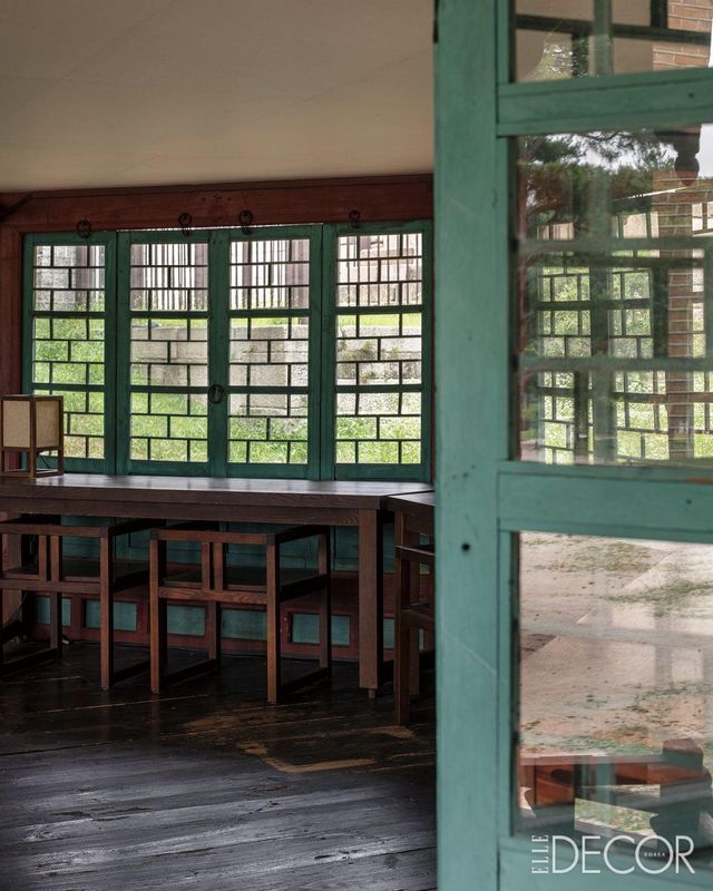 팔우정 외부와 내부. 창가에 앉아 경복궁 풍경을 바라볼 수 있다.