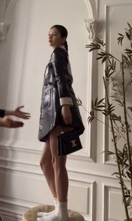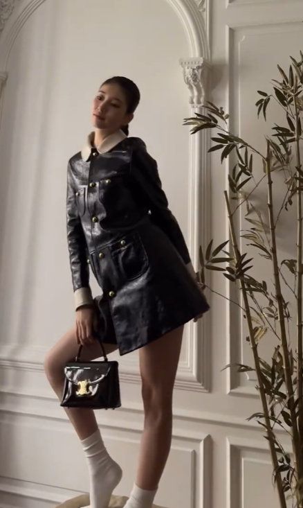 영상 속 그는 초미니 레더 원피스를 입은 채 모델 비율과 쭉 뻗은 각선미를 강조했다. 푹신한 의자 위에서 한 발을 들고 포즈를 취하다 순간 휘청거렸지만 이내 아무 일 없었던 것처럼 멋스러운 포즈를 선보였다.
