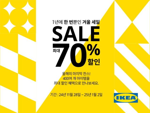 이케아 코리아가 겨울과 연말 시즌을 맞아 11월28일부터 2025년 1월2일까지 약 5주간 '겨울 세일'을 진행한다.
