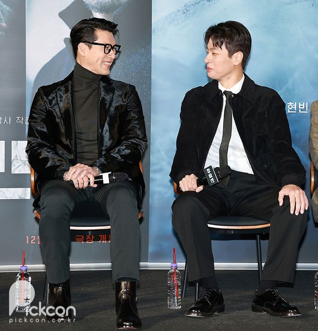 27일 서울 CGV 용산아이파크몰점에서 영화 '하얼빈' 제작보고회가 진행돼 현빈, 박정민, 조우진, 전여빈, 박훈, 유재명, 이동욱, 우민호 감독이 참석했다. 영화 '하얼빈'은 1909년, 하나의 목적을 위해 하얼빈으로 향하는 이들과 이를 쫓는 자들 사이의 숨 막히는 추적과 의심을 그린 작품.