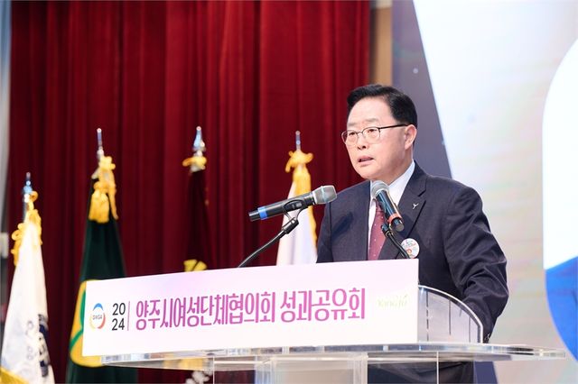 (양주=뉴스영 변영숙 기자) 강수현 양주시장이 지난 26일 ‘경기섬유종합지원센터 컨벤션홀’에서 개최된 ‘2024년 양주시여성단체협의회 성과 공유회’에 참석했다.