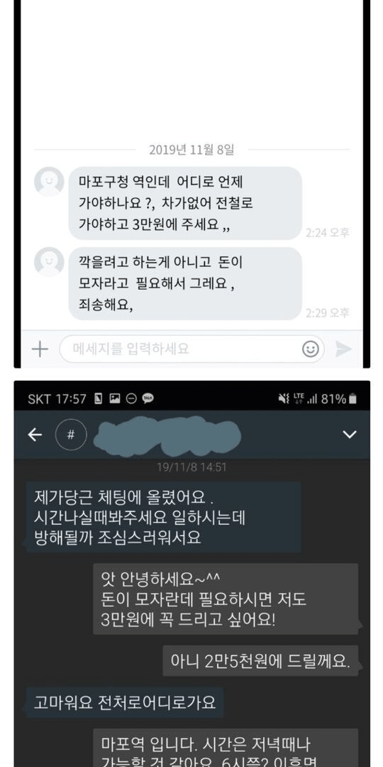 할아버지와 중고 거래를 했습니다.