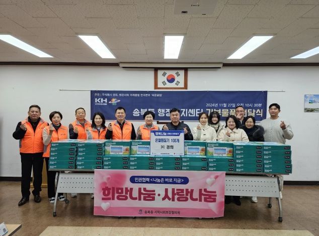 윤경숙 송북동장은 “변함없는 나눔을 실천하시는 지역사회보장협의체와 ㈜경희에 감사드리며, 겨울철에 손길이 필요한 취약 계층에게 잘 전달하겠다”고 밝혔다.
