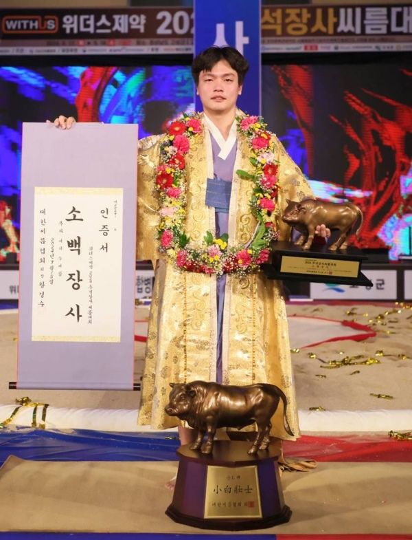 황찬섭은 27일 전남 영암체육관에서 열린 위더스제약 2024천하장사 씨름대축제' 소백장사 결정전에서 유환철(용인시청)을 맞아 압도적인 경기력을 선보이며 3-1로 제압, 소백장사 타이틀을 거머쥐었다.