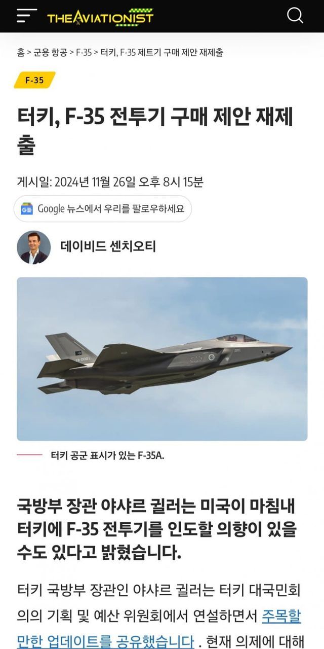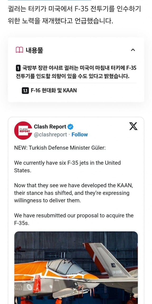 칠면조가 F-35 도입을 위해서 또 제안서 냈다는 내용인데 자기네들 S-400에 대한 미국의 태도가 정권교체와 함께 바뀌어 가고 있고, KAAN 개발로 어쩌면 미국이 다시 F-35 프로그램 참여 승인해줄거라고 김칫국 마시는 내용임.