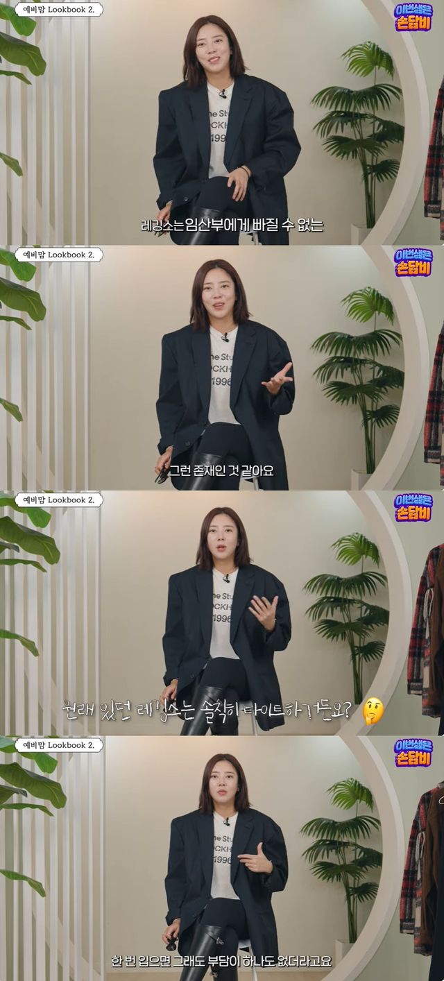 이어 손담비는 "레깅스는 임산부에게 빠질 수 없는 존재다. 원래 있던 레깅스는 꽉 껴서 조금 넉넉한 사이즈를 사서 한 번 입으면 부담이 없다"고 덧붙였다.