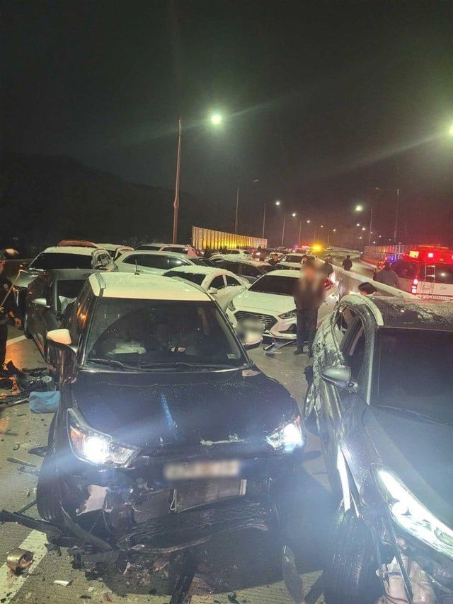 원주시 호저면 만종리 만종교차로∼기업도시 방면 도로에서 53대 추돌사고가 발생했다