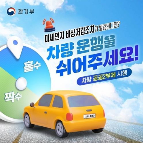 [와이뉴스] 맑은 하늘을 위해 정부와 공공기관이 먼저 실천하는 ‘차량 공공2부제*’가 시행됩니다. 차량 공공2부제는 모두가 미세먼지 줄이기에 동참할 수 있도록 정부와 공공기관이 앞장서서 차량 운행을 줄이는 제도입니다.
