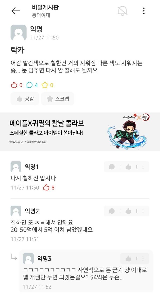 자연이 지워줘서 5억 남았대!! ㅎㅎ다시 칠하진 않으신대!