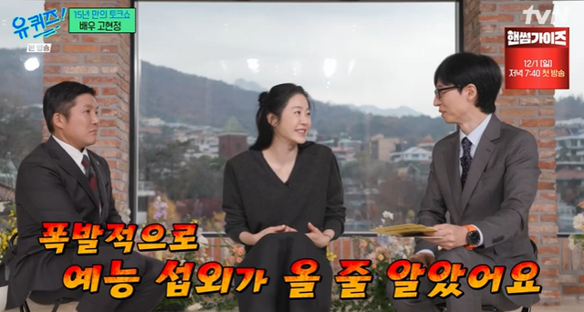 이날 수줍게 등장한 고현정은 “긴장이 별로 안 됐었는데 앉으니까 너무 떨린다”며 “섭외가 왔을 때 너무 놀랐다. 내가 드디어 유퀴즈를 나간다니”라고 감격했다.