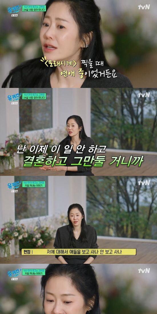 27일 방송된 tvN '유 퀴즈 온 더 블럭'(이하 '유퀴즈')에서는 '지금 이 순간' 특집으로 꾸며진 가운데 고현정이 결혼 당시 심경을 밝힌 장면이 전파를 탔다.